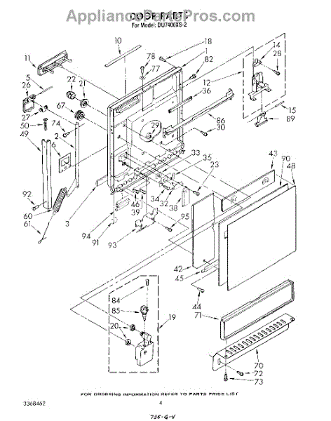 Parts for Whirlpool DU7400XS2: 03 - Door Parts