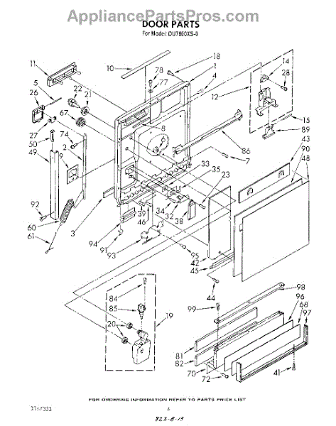 Parts for Whirlpool DU7800XS0: 03 - Door Parts