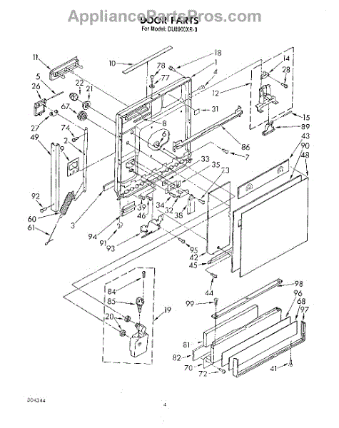 Parts for Whirlpool DU8000XR0: 03 - Door Parts