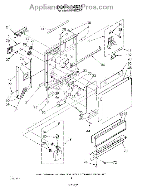 Parts for Whirlpool DU8350XT0: 03 - Door Parts