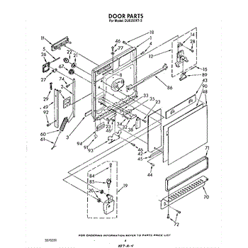 The Dispenser Cover Kit is an OEM replacement part for Whirlpool dishwashers. It includes both the outer lid that protects the detergent and rinse aid compartments as well as the latch mechanism securing it closed. This dishwasher dispenser kit included the cover, lid hinge pin, spring, snap, and latch.