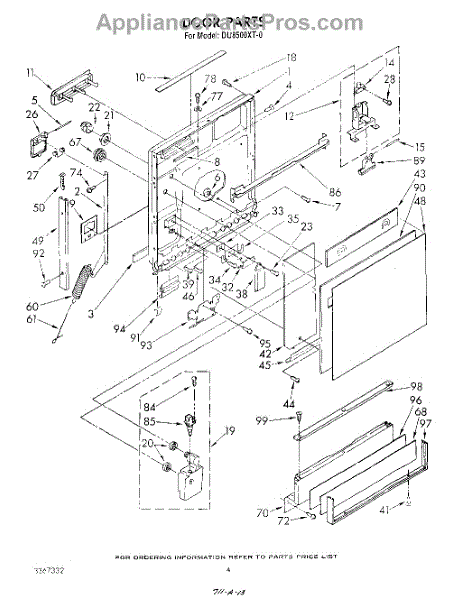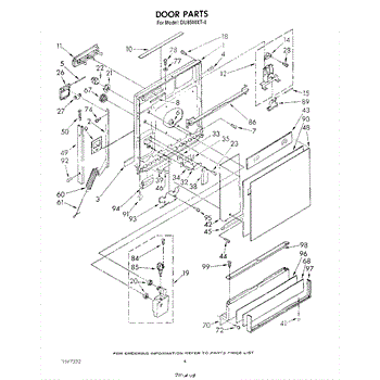 Door spring assembly with retainer for dishwashers. Installs between door hinge and frame to counterbalance door weight. Replace when cracked or broken.