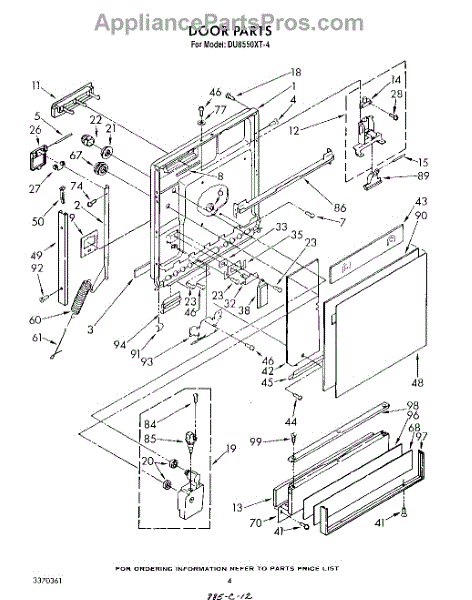Parts for Whirlpool DU8550XT4: 03 - Door Parts
