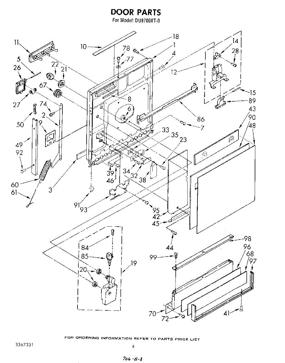 Parts for Whirlpool DU8700XT0: 03 - Door Parts