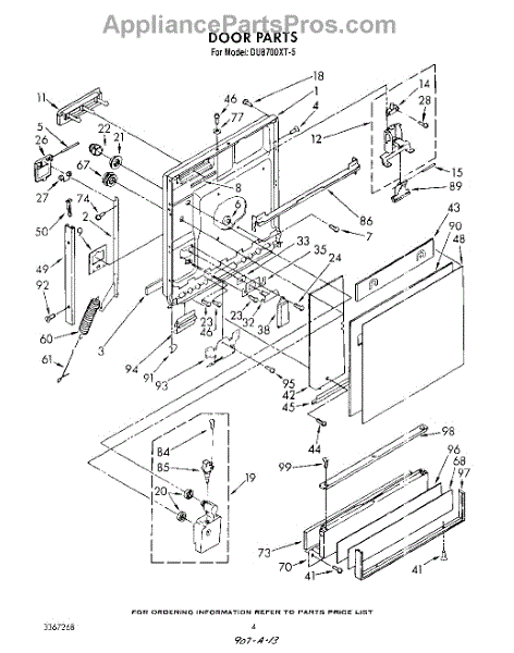 Parts for Whirlpool DU8700XT5: 03 - Door Parts