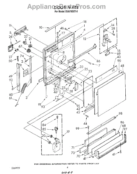 Parts for Whirlpool DU8750XT0: 03 - Door Parts