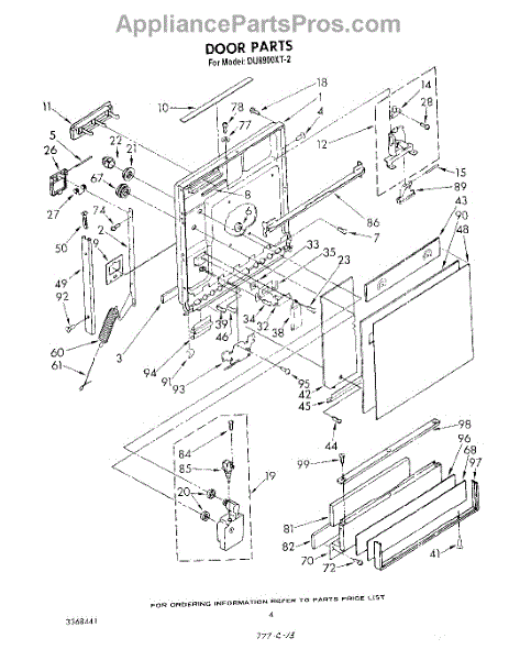 Parts for Whirlpool DU8900XT2: 03 - Door Parts