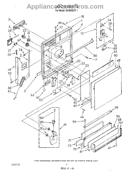 The Dispenser Cover Kit is an OEM replacement part for Whirlpool dishwashers. It includes both the outer lid that protects the detergent and rinse aid compartments as well as the latch mechanism securing it closed. This dishwasher dispenser kit included the cover, lid hinge pin, spring, snap, and latch.