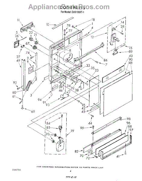 Parts for Whirlpool DU9100XT1: 03 - Door Parts