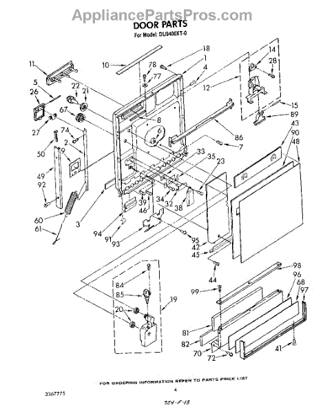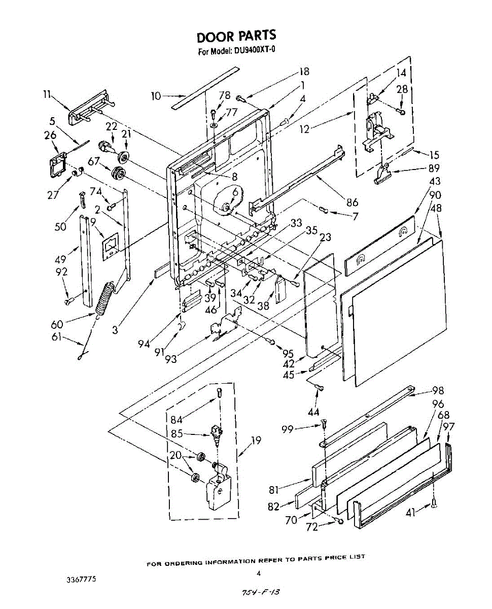 Parts for Whirlpool DU9400XT0: 03 - Door Parts