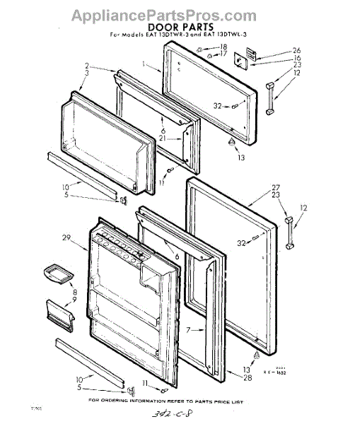 Parts for Whirlpool EAT13DTWR3: 08 - Door Parts
