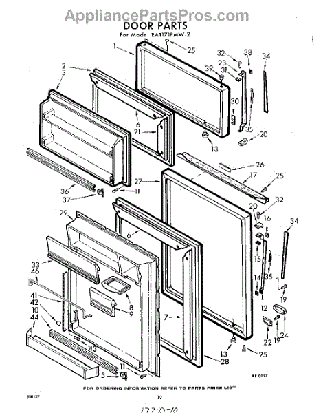 Parts for Whirlpool EAT171PMW2: 10 - Door Parts