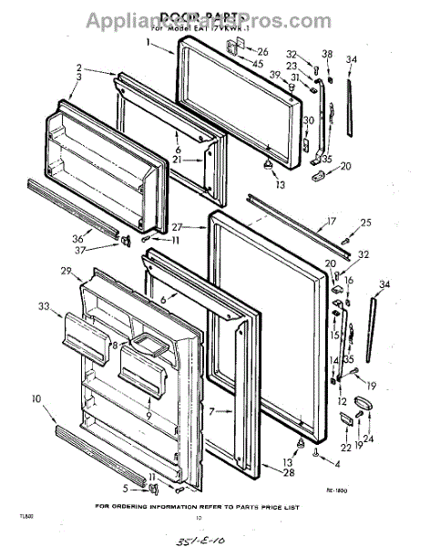 Parts for Whirlpool EAT17VKWR1: 10 - Door Parts