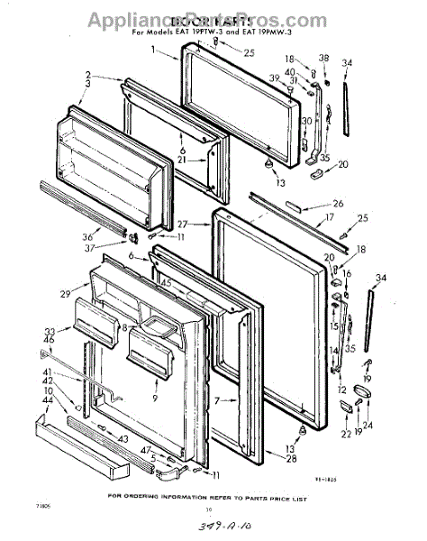 Parts for Whirlpool EAT19PTW3: 10 - Door Parts