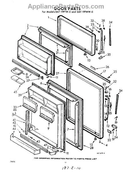Parts for Whirlpool EAT19PTWR0: 10 - Door Parts