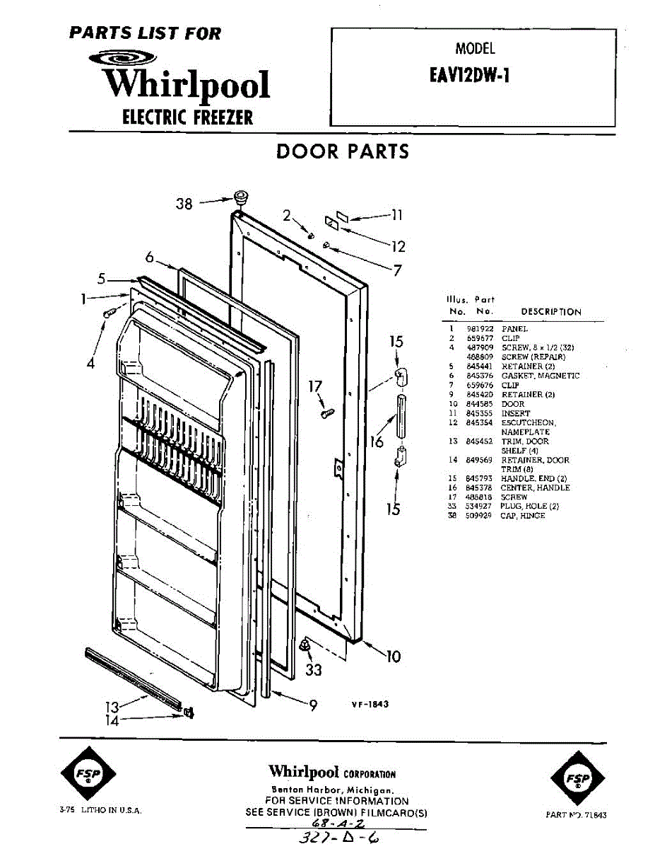 Parts for Whirlpool EAV12DW1: 01 - Door Parts