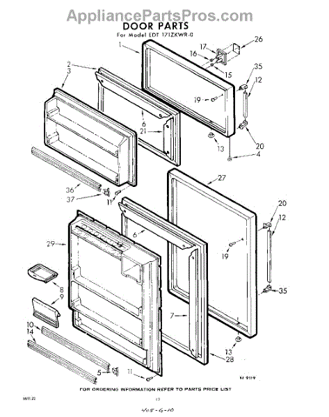 Parts for Whirlpool EDT171ZKWR0: 10 - Door Parts