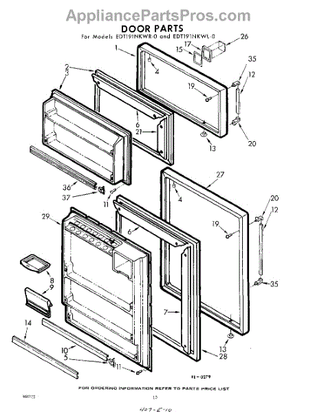 Parts for Whirlpool EDT191NKWR0: 10 - Door Parts