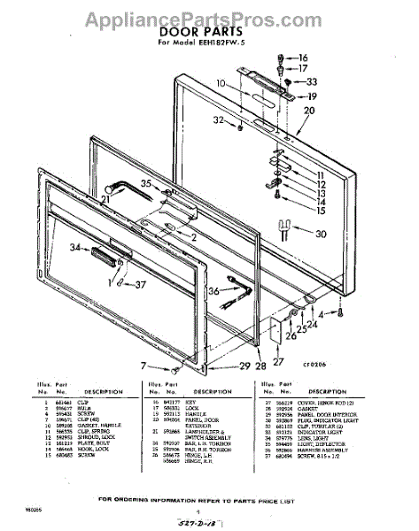 Parts for Whirlpool EEH182FW5: 04 - Door Parts