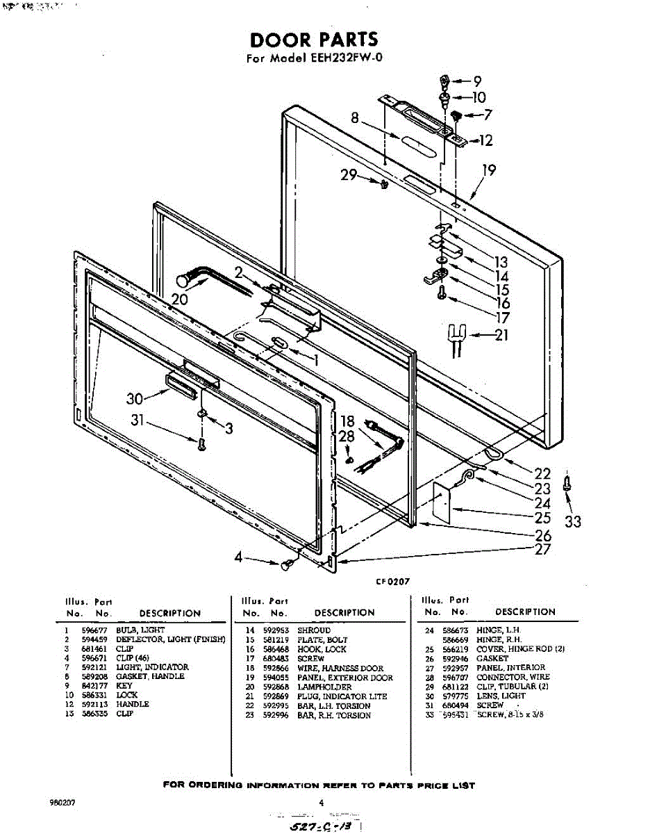 Parts for Whirlpool EEH232FW0: 04 - Door Parts