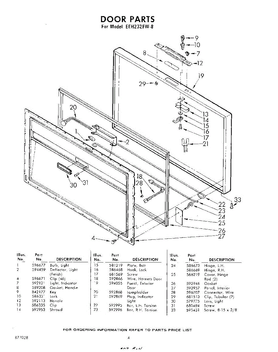 Parts for Whirlpool EEH232FW8: 04 - Door Parts