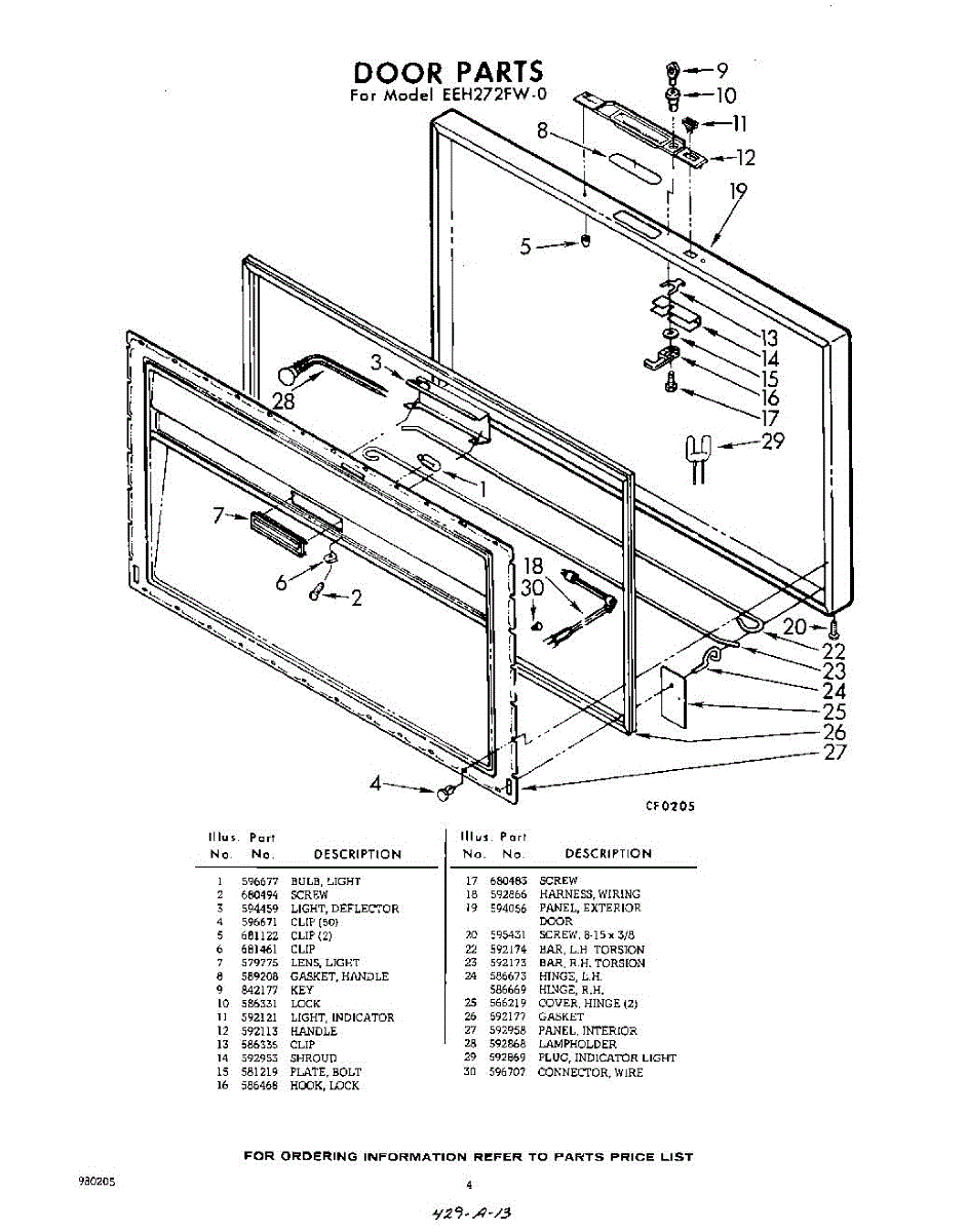 Parts for Whirlpool EEH272FW0: 04 - Door Parts