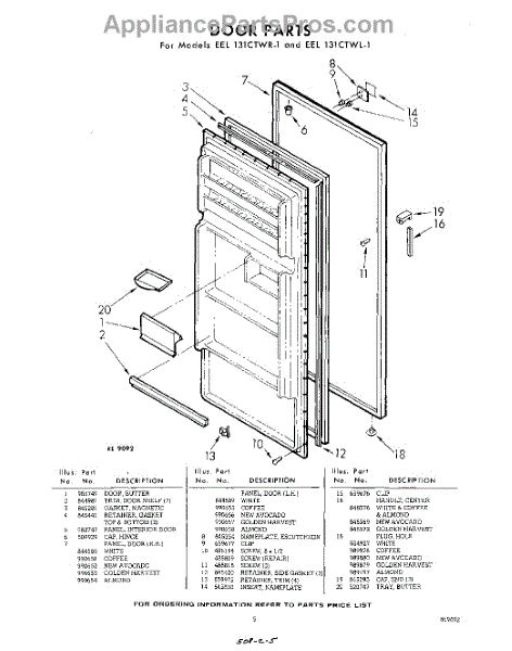 Parts for Whirlpool EEL131CTWR1: 05 - Door Parts