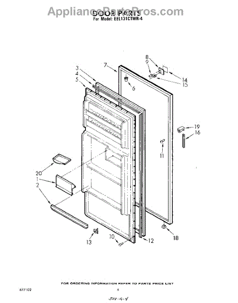 Parts for Whirlpool EEL131CTWR4: 04 - Door Parts