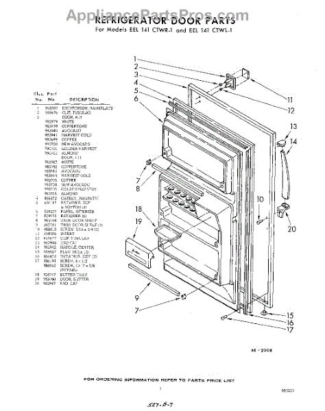 Parts for Whirlpool EEL141CTWR1: 07 - Door Parts