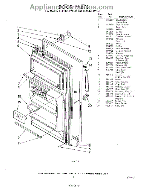 Parts for Whirlpool EEL142ETWR0: 07 - Door Parts
