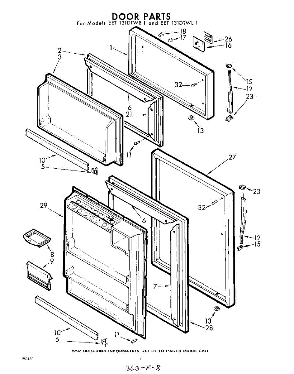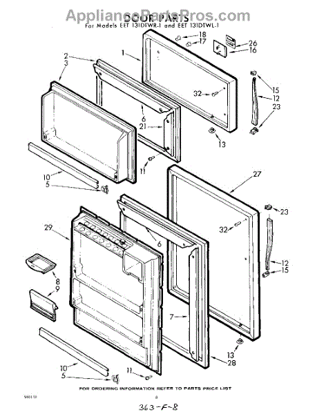 Parts for Whirlpool EET131DTWR1: 08 - Door Parts