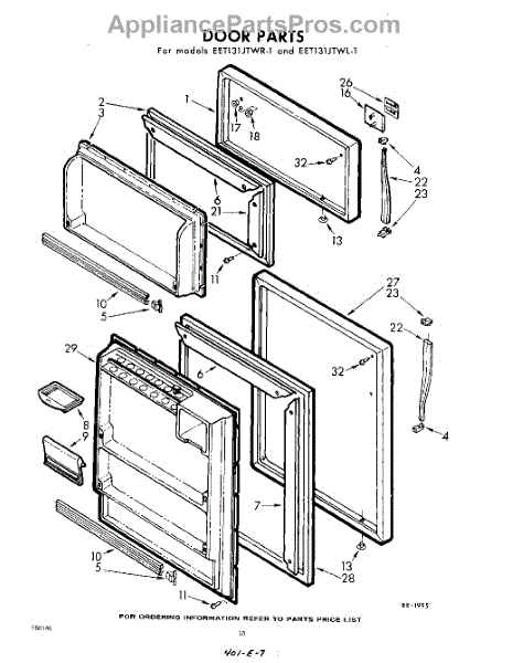Parts for Whirlpool EET131JTWR1: 10 - Door Parts