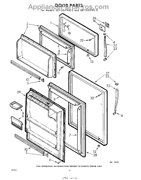Parts for Whirlpool EET132JTWR0: 10 - Door Parts