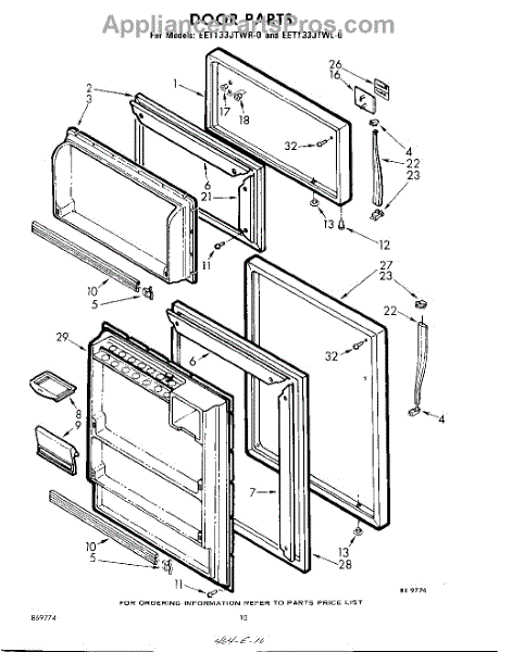 Parts for Whirlpool EET133JTWR0: 10 - Door Parts