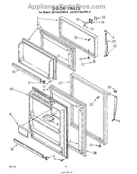 Parts for Whirlpool EET134JTWR0: 10 - Door Parts