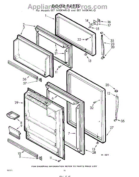Parts for Whirlpool EET141EKWR0: 10 - Door Parts