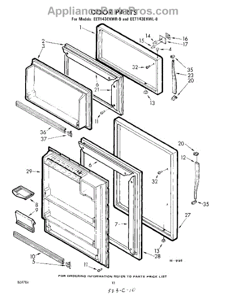 Parts for Whirlpool EET143EKWR0: 10 - Door Parts