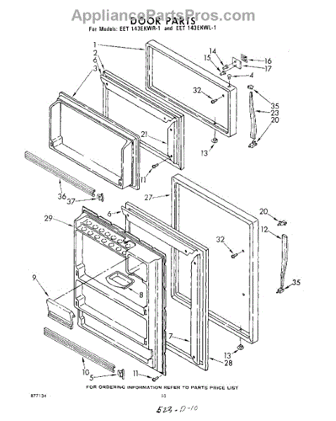 Parts for Whirlpool EET143EKWR1: 10 - Door Parts