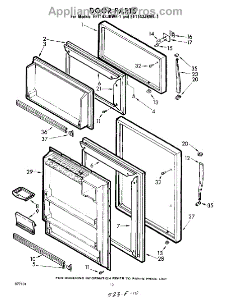 Parts for Whirlpool EET143JKWR1: 10 - Door Parts