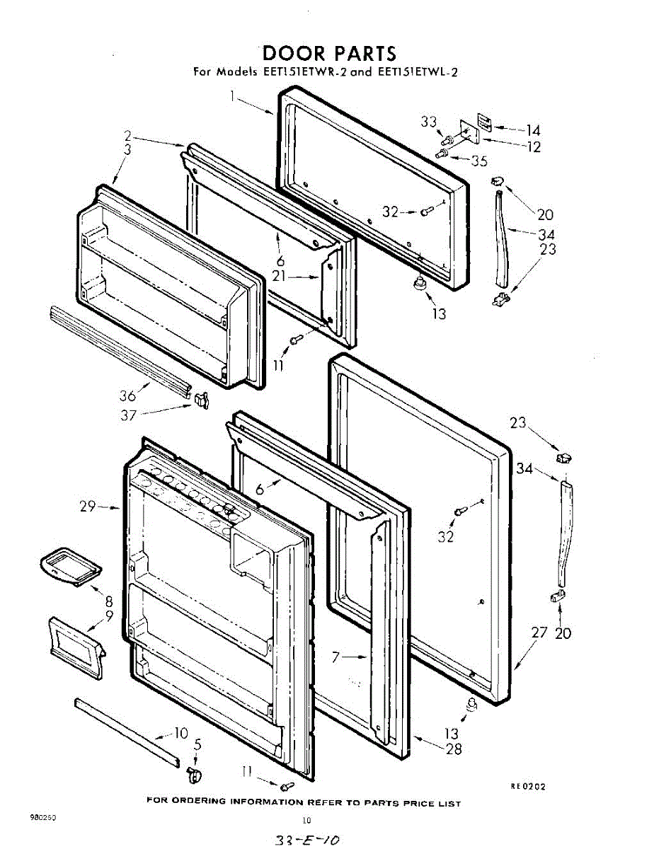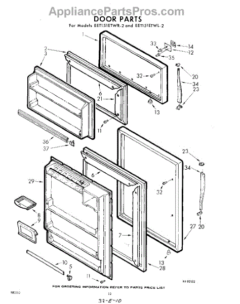 Parts for Whirlpool EET151ETWR2: 10 - Door Parts