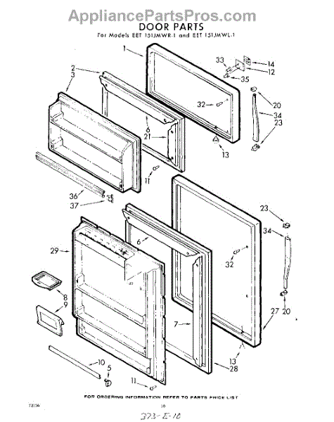 Parts for Whirlpool EET151JMWR1: 10 - Door Parts