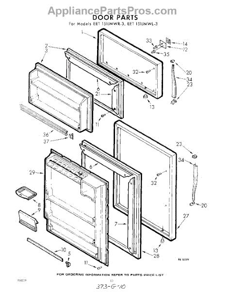 Parts for Whirlpool EET151JMWR3: 10 - Door Parts