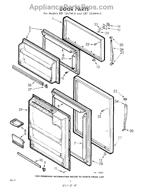 Parts for Whirlpool EET151JTWR0: 10 - Door Parts