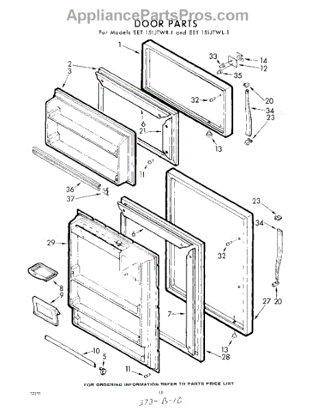 Parts for Whirlpool EET151JTWR1: 10 - Door Parts