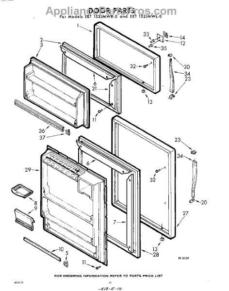 Parts for Whirlpool EET152JMWR0: 10 - Door Parts