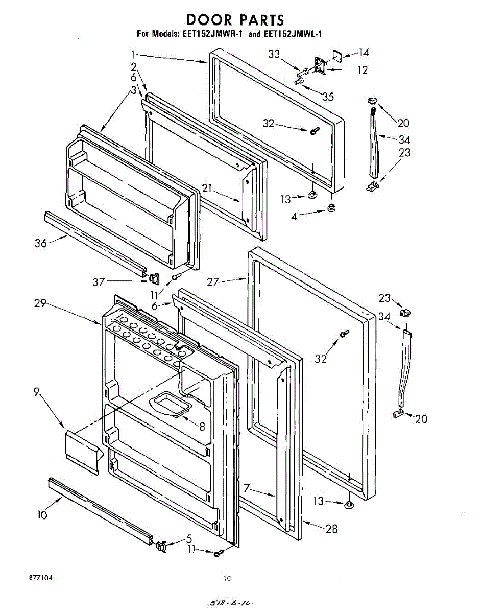 Parts for Whirlpool EET152JMWR1: 10 - Door Parts