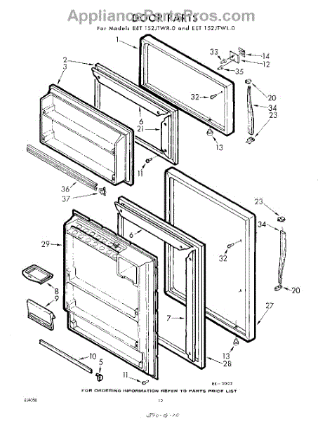 Parts for Whirlpool EET152JTWR0: 10 - Door Parts