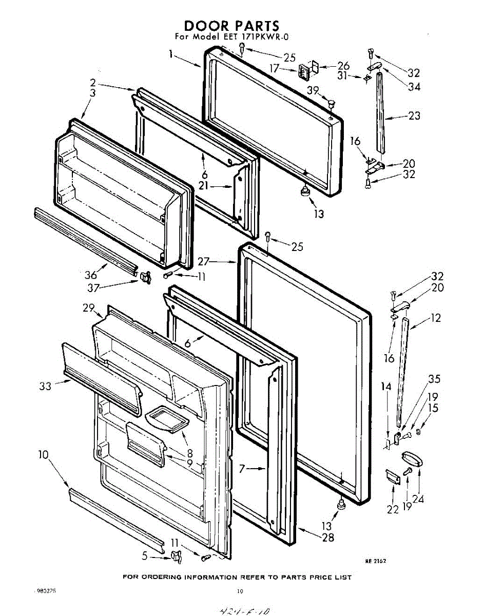 Parts for Whirlpool EET171PKWR0: 10 - Door Parts