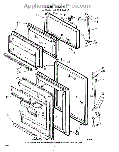Parts for Whirlpool EET171PKWR5: 10 - Door Parts