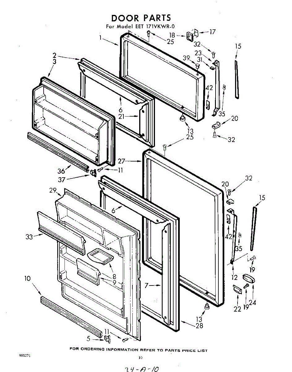 Parts for Whirlpool EET171VKWR0: 10 - Door Parts